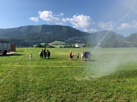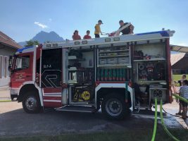 Das Programm gestaltete sich von der Führung durch die Zeugstätte, das Vorzeigen der Einsatzfahrzeuge mit deren Ausrüstung sowie die richtige Bekleidung für den Ernstfall. Das Highlight ist wie jedes Jahr das Ausprobieren der verschiedenen Strahlrohre.