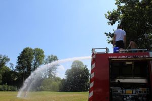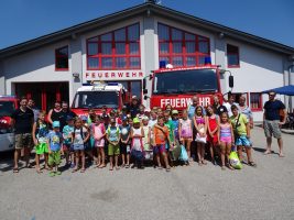 Natürlich waren auch die Betreuerinnen nicht zu feige die Rutsche auszuprobieren. Zwei Stunden genossen die Kinder die Zeit bei der Feuerwehr und durften natürlich auch Spritzen und mit dem Feuerwehrauto fahren. Danach gab es im Feuerwehrhaus noch eine gute Jause, bevor die Eltern wieder ihre müden Kinder nach Hause holten.