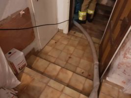 Ein Bewohner bemerkte in seinem Keller Wasser und rief die Florianis zu Hilfe. Nach der Lageerkundung durch den Einsatzleiter, HBM Michael Randacher, wurde der Bereitschaftsdienst vom Wasserwerk Bad Ischl verständigt und mit dem Absaugen des Wassers mit der Tauchpumpe begonnen. Nachdem die Hauszuleitung abgedreht und der Keller leergepumpt war, konnte man wieder in die Zeugstätte einrücken.