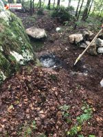 Die Anrufer erwarteten uns bereits am Parkplatz, wodurch die Einsatzstelle schnell und einfach zu finden war. Bei der Lageerkundung wurde mitten im Wald eine noch glosende Feuerstelle, in der sich sogar noch einige Folienkartoffel befanden, vorgefunden. Der betroffene Bereich wurde umgegraben und mit einem C-Rohr abgelöscht.