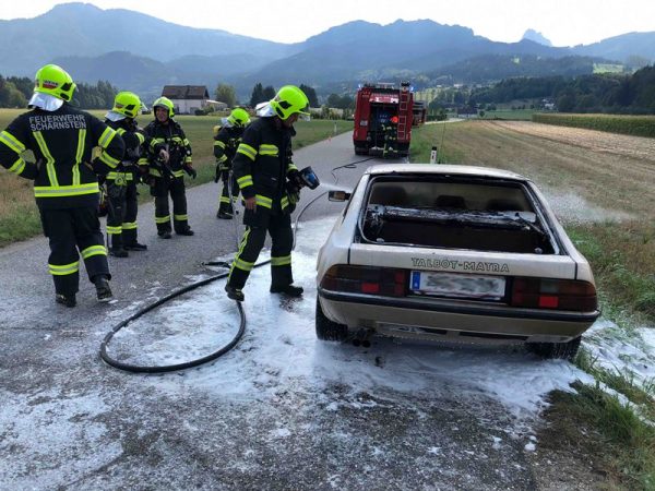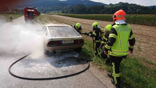 Am Montag, 20.08.2018 wurde die Feuerwehr Scharnstein zu einem KFZ-Brand in die Mayrhofstraße gerufen. Bereits während der Anfahrt war eine schwarze Rauchsäule sichtbar und beim Eintreffen der Feuerwehr drang dichter Rauch und Feuerschein aus dem Motorraum heraus. Unter schwerem Atemschutz bekämpfte die Feuerwehr Scharnstein den PKW-Brand und brachte diesen rasch unter Kontrolle. Ursache dürfte vermutlich ein elektrischer defekt gewesen sein.