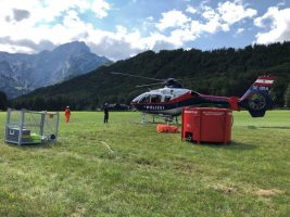 Am Donnerstagnachmittag, 16.08.2018 führte die Flugpolizei gemeinsam mit den Feuerwehren Grünau und Scharnstein (Flughelfer- und Waldbrandstützpunkt) ein Ausbildungstraining am Almsee, Gemeinde Grünau im Almtal durch. Für den Piloten war Schwerpunkt dieser Ausbildung das Transportieren von Lasten und das Transportieren von Löschbehältern (Renzler-Löschbehälter und Bumbi Bucket), inkl. Befüllung von einem Standbehälter.