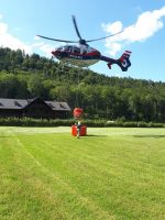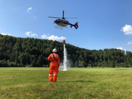 Auch die Einweisung des Hubschraubers, das Aus- und Einhängen von Lasten konnte mehrmals trainiert werden. Die praktische Anwendung der verschiedener Löschwasserbehälter Modell Renzler und Bambi Bucket mit verschiedenen Abwurfgeschwindigkeiten, sowie das präzise Abwerfen von Löschwasser waren ein Teil der Ausbildungseinheiten für den Piloten der Flugpolizei.