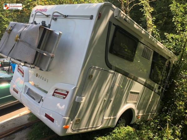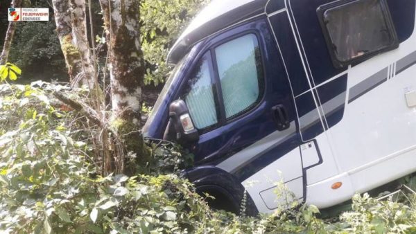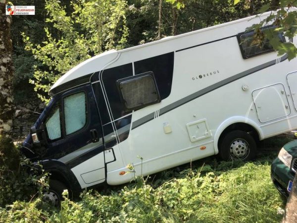 Am Montagmittag wurden die Kameraden der Feuerwehr Ebensee zur einer Fahrzeugbergung beim vorderen Langbathsee gerufen. Aus unbekannter Ursache rollte ein Wohnmobil vom Parkplatz eine Böschung hinunter und blieb an einem Baum hängen.