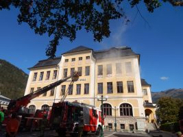 Umgehend wurde zum Brandobjekt ausgerückt. Sofort nach dem Eintreffen, begann der Einsatzleiter, ABI Jochen Eisl, mit der ersten Lageerkundung. Laut einem anwesenden Lehrer, galten im ersten Moment über 30 Menschen als vermisst. Dichter Rauch drang aus dem Gebäude. Aus den oberen Stockwerken hörte man auch Hilfeschreie. Sofort wurde Pflichtbereichsalarm ausgelöst. Somit machten sich auch die restlichen Ischler Feuerwehren und Wachen zur Unterstützung auf den Weg ins Stadtgebiet.