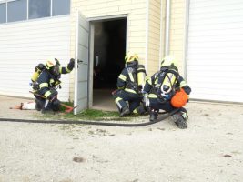Die im Übungsobjekt vermissten Personen wurden von 4 Trupps mit schweren Atemschutz gesucht und gerettet. Teilweise wurden die Personen über die nachalarmierte Teleskopmastbühne der FF Vöcklabruck gerettet. Die FF Regau und FF Rutzenmoos bauten vom Löschwasserbehälter Schönberg eine fast 1000 Meter lange Zubringerleitung auf, während die FF Aurach die Brandbekämpfung vom Löschwasserbehälter Illingbuch entwickelte. Im Übungseinsatz standen 70 Feuerwehrkameraden und Kameradinnen mit 9 Fahrzeugen.
