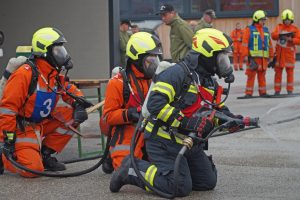 Gleich vier Gruppen der FF Bad Goisern traten kürzlich zur neuen Form der Ausbildungsprüfung, dem Branddienst-Leistungsabzeichen an. Ausgehend von einem Tanklöschfahrzeug galt es, realistische Einsatzszenarien (Heckenbrand, Zimmerbrand oder einen Flüssigkeitsbrand) möglichst fehlerfrei und in einem vorgegebenen Zeitrahmen abzuarbeiten. Weiters mussten die teilnehmenden Feuerwehrmänner Geräte aus dem Einsatzfahrzeug bei geschlossenen Türen – also gleichsam blind – vorzeigen bzw. auffinden. Nach dem Angriffsbefehl setzten die Feuerwehrmänner die erforderlichen Maßnahmen: Vom Löschangriff mit dem Strahlrohr oder Schaum unter Atemschutzausrüstung, dem Absichern der Einsatzstelle oder dem Aufbau des Hochleistungslüfters bis hin zu richtigen Funkmeldungen und dem Aufbau einer Wasserversorgung von einem Hydranten reichten die Aufgaben.