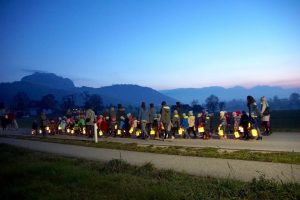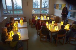 Gehöriges Lampenfieber begleitete die Kinder des Kindergarten Gschwandt am Donnerstag, 8.11.2018 den ganzen Tag über. Um 17:00 Uhr war es dann soweit, der MARTINSUMZUG mit dem heiligen Martin hoch zu Roß konnte beginnen. An die 100 Kids mit ihren tollen, selbstgebastelten Laternen zogen laut singend „Ich gehe mit meiner Laterne“ mit den Pädagoginnen vom Kindergarten in Richtung Ortszentrum Gschwandt. Mütter, Väter, Omas, Opas, Onkel, Tanten, Verwandte und Bekannte säumten die Straße und marschierten dann mit der Kinderschar in die Pfarrkirche Gschwandt, wo Pfarrmoderatorin Anna-Maria MARSCHNER die Martinsfeier leitete. Die Kirche war bis auf den letzten Platz gefüllt. Unter Musikbegleitung mit Kindergartenleiterin Monika WEISMANN auf der Gitarre wurden dann nochmals alle Lieder vom heiligen Martin gesungen und dies wurde am Ende auch von allen mit tosendem Applaus gewürdigt.