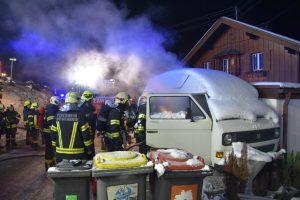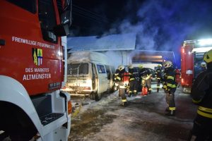In der Amtmannstraße in Altmünster, kam es aus ungeklärter Ursache, zu einem Brand in einem dort abgestellten Fahrzeug. Rasch begannen die erst eintreffenden Einsatzkräfte, mittels Atemschutz und Schaum, mit den notwendigen Löscharbeiten. Dadurch konnte ein Übergreifen auf die daneben befindliche Garage und deren Fahrzeugen verhindert werden.