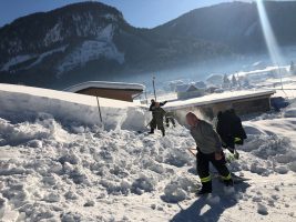 Ankunft in der Einsatzzentrale der FF-Gosau war kurz vor 08:00 Uhr. Dort wurden die Aufträge an die einzelnen Wehren vergeben. Die Kameraden der FF Schöfling wurden zu einer Tischlerei direkt im Ort eingeteilt. Hier mußten ca. 400 m² Dachfläche mit durchschnittlicher Schneehöhe von 1,5 m abgeschaufelt werden. Dies sah am Anfang leichter aus als es dann sein sollte. Man hatte ordentlich zu tun um vor Einbruch der Dunkelheit die Arbeit erfolgreich zu beenden.