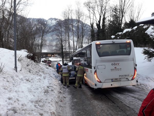 Mit Schaufeln wurde der Straßenrand vom Schnee befreit und verbreitert, der PKW mit Muskelkraft zur Seite gehievt und anschließend mit der Einbauseilwinde den Hang hinauf gezogen. Ein Streufahrzeug des Wirtschaftshofs Bad Ischl wurde angefordert um Salz aufzubringen. Der Bus und der PKW konnten ihre Fahrt fortsetzen. Nach gut eineinhalb Stunden war der Einsatz beendet.