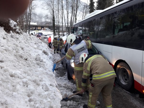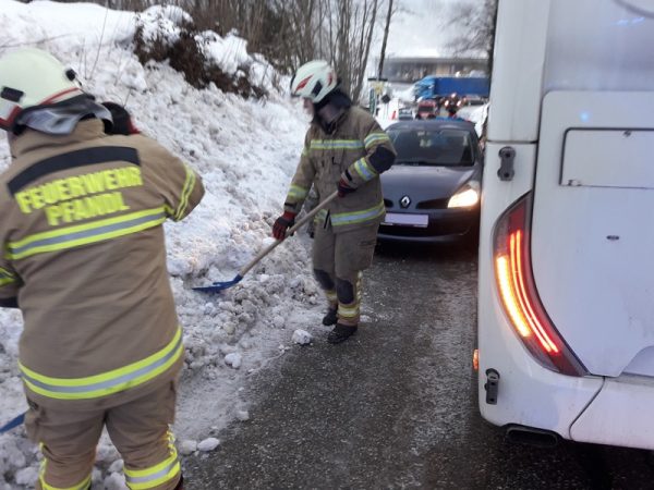 Die Freiwillige Feuerwehr Pfandl wurde am Mittwochmorgen zu einer Fahrzeugbergung alarmiert. Ein Bus und ein PKW waren aufgrund der winterlichen Fahrverhältnisse aneinander gerutscht.
