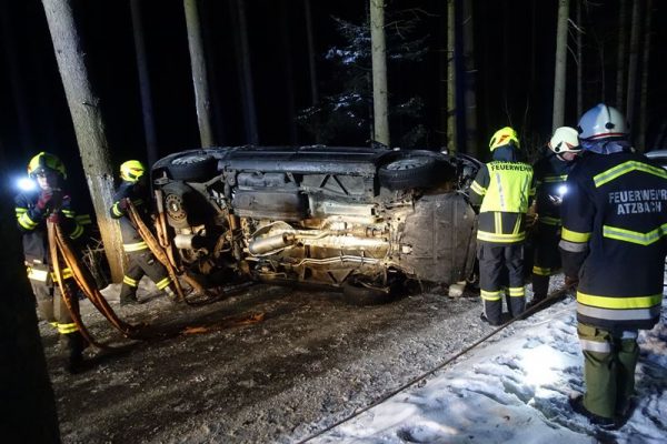 Sonntagabend wurde die FF Atzbach zu einem Verkehrsunfall auf die Gemeindestraße zwischen Atzbach und Manning alarmiert. Aus ungeklärter Ursache ist ein Autolenker von der Straße abgekommen. Nach dem Anprall bei einem Baum wurde das Fahrzeug wieder auf die Straße geschleudert und blieb am Dach liegen.