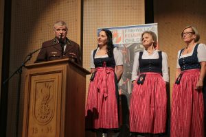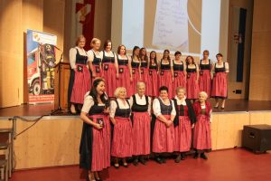 Doch nicht der Kassabericht wurde verlesen, sondern eine ganz besondere Überraschung wartete auf die Anwesenden. Der große Auftritt der „FEUERWEHRDIRNDLN“ aus Ohlsdorf wurde angekündigt und 13 der 21 Frauen und Freundinnen der Feuerwehrkameraden mit gleichen Dirndlkleidern marschierten auf die Bühne.