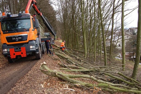Umstürzende Bäume und Totholz in den Baumkronen waren der Grund dafür, dass der Weg bereits seit zwei Jahren nicht mehr benutzt werden durfte. Nunmehr werden die Holzarbeiten durchgeführt.