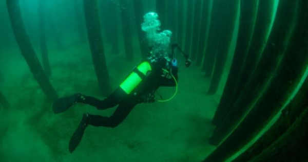 Ein Labyrinth aus 111 Pfählen soll die Taucher auf eine Zeitreise in die Jungsteinzeit vor 6000 Jahren mitnehmen. Texttafeln informieren über die Entstehung der ersten Siedlungen. Der Anblick der Pfähle ist bei der zur Zeit sehr guten Sicht unter Wasser atemberaubend.