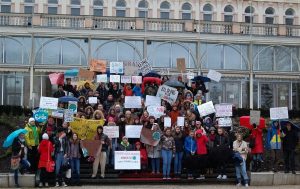 Die Teilnehmer trafen sich bei strömendem Regen im Kurpark und langsam wurde die Menschenschar immer mehr, in kleinen Gruppen sind die Schüler und Schülerinnen herbeigekommen. Viele hatten selbstgemachte Plakate oder ein Transparent dabei.