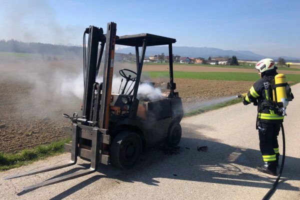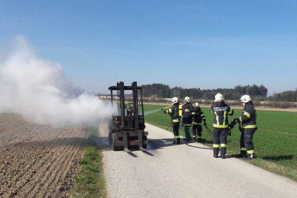 Bereits von Weitem war eine Rauchsäule sichtbar. Laut Information des Besitzers, wurde der Stapler erst am Freitag von der Werkstatt abgeholt. Mit einem Hochdruckstrahlrohr wurde der Brand rasch abgelöscht. Danach konnte die Batterie entfernt werden.