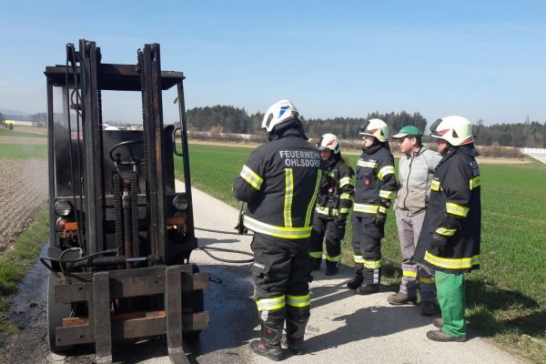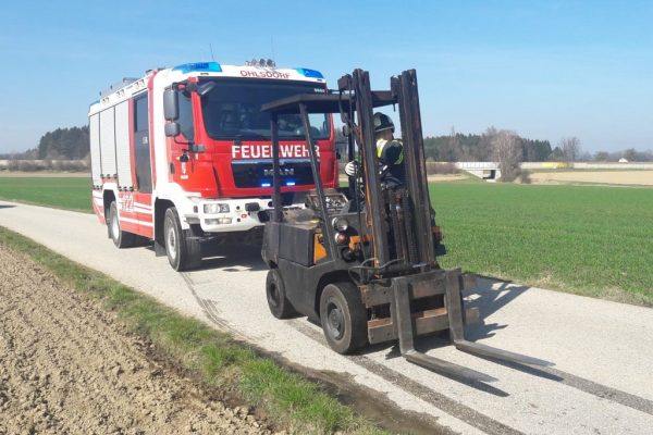 Die Feuerwehr Ohlsdorf wurde Samstagvormittag zu einem Staplerbrand nach Traich gerufen.
