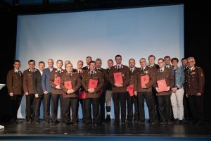 Aufgrund der Wiederwahl des Bezirksfeuerwehrkommandanten OBR Stefan Schiendorfer erhielten „seine“ Hauptamtswalter ihre Ernennungsdekrete von LBD Dr. Wolfgang Kronsteiner überreicht.