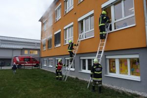 Auch heuer führten die Kameraden gemeinsam mit den Lehrkräften und dem Schulpersonal eine Räumungsübung durch. Aufgrund starker Rauchentwicklung bei einem Brand im Konferenzzimmer mussten einige Kinder über Leitern in Sicherheit gebracht werden. Nach der Evakuierung des Gebäudes wurde am Sammelplatz noch eine Nachbesprechung durchgeführt, bevor es wieder in den Unterricht ging.