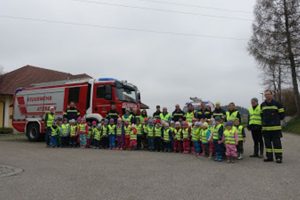 Nach der Räumungsübung am Mittwoch in der Volksschule besuchte der Atzbacher Kindergarten die Feuerwehr mit über 50 Kindern! Nach einer kurzen Vorstellung ging es gleich in drei Gruppen im Stationsbetrieb weiter. Die Kinder durften alles ausprobieren, anprobieren und natürlich viele Fragen stellen. Höhepunkte waren auf jedem Fall das „Abseilen“, Hantieren mit dem hydraulischen Rettungsgerät und Anziehen der Schutzbekleidung. Außerdem das Aufheben eines Traktors mit den Hebekissen, Betreten eines verrauchten Raumes und Spritzen mit dem HD Rohr. Nach dem Brandversuch wie schnell ein Christbaum im Vollbrand steht, ging es mit dem Feuerwehrautos zurück in den Kindergarten.