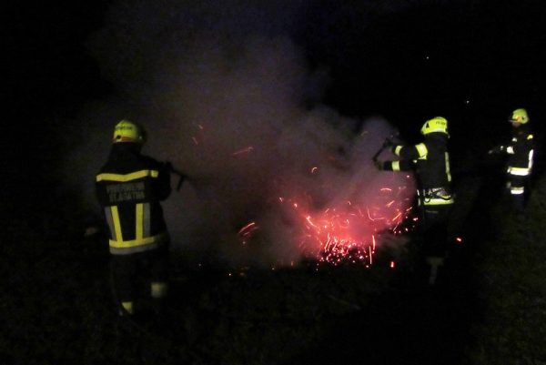 Anrainer bemerkten den Feuerschein und alarmierten die Einsatzkräfte. Mittels Hochdruckrohr von Tankwagen und Vorauslöschfahrzeug wurde das Feuer binne kürzester Zeit niedergeschlagen, verbleibende Glutnester wurden mit der Wärmebildkamera aufgespürt und abgelöscht. Nachdem eine weiter Ausbreitung ausgeschlossen werden konnte, wurde der Einsatz nach knapp einer halben Stunde wieder beendet. Insgesamt stand die FF St. Agatha mit 3 Fahrzeugen und 24 Mann im Einsatz.
