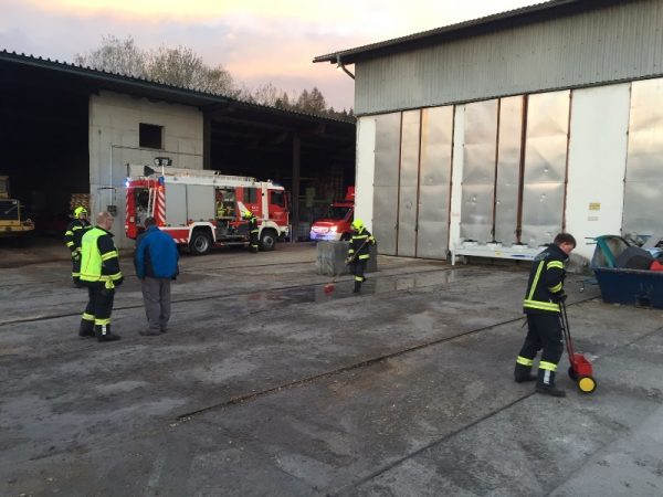 Durch ein Gebrechen an einem IBC kam es heute Nacht zu einem Flüssigkeitsaustritt in einem ortsansässigen Betrieb von Attnang-Puchheim. Ungefähr 400l Medium ergossen sich dabei im Laufe der Nacht. Da die genaue Gefahr des Stoffes nicht klar war und auch Gefahr bestand, dass die Flüssigkeit in das Kanalnetz gelangt, wurde der „Gefährliche Stoffe Zug“ der Freiwillige Feuerwehr Puchheim alarmiert.