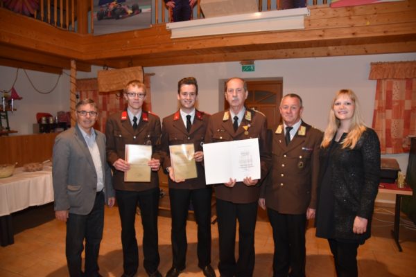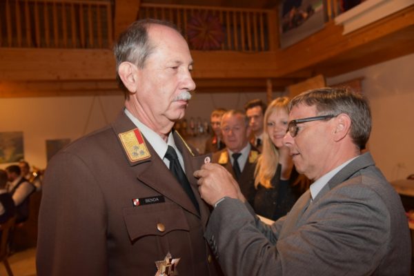 Im Zuge dessen wurden zwei Kameraden befördert: Stefan Treml zum Hauptfeuerwehrmann und Manuel Burgstaller zu Oberfeuerwehrmann. Eine besondere Ehrung konnte OBR Robert Benda entgegennehmen. Er erhielt für 50 Jahre Dienst in der Feuerwehr die Feuerwehrverdienstmedaille vom Land OÖ überreicht.