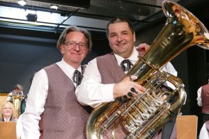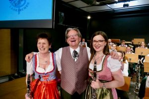 Die musikalischen Reigen starteten die Jungmusiker und die „Laakirchner Blockflöten-Kinder“, welche unter den Jugendreferenten Susanne Hubinger, Florian Schatzl und Beate Leb das Publikum spüren ließen, wie gern sie musizieren und sich freuten, einmal bei den „Großen“ dabei zu sein. Die „Großen“ – die Stadtkapelle – startete mit dem Vindobona-Marsch und dem Konzertstück „Egmont“ von Ludwig van Beethoven. Nach der Pause erfreuten Theresia Kuenz und Susanne Hubinger mit dem Stück „Lustige Klarinetten“ die Zuhörer, bevor Peter Sperl mit Farmer’s Tuba sein musikalisches Können, seine Feinfühligkeit und Talent als Bassist unter Beweis stellte. Obmann Andreas Stockhammer bedankte sich nochmals bei seinem Vorgänger für seine 18-jährige Tätigkeit als Obmann und überreichte ihm die Ehrenurkunde zum „Ehrenobmann der Stadtkapelle Laakirchen“.