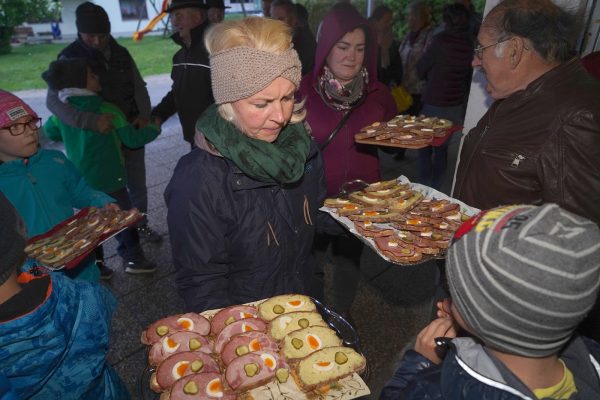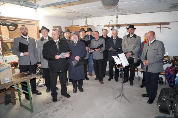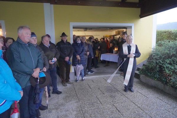 Durch zwei Garagen und einer großen Überdachung davor waren alle Teilnehmer/innen beim Nachbar zumindest im Trockenen untergebracht. Obmann Rupert HELMBERGER brachte am Ende der Feier noch die Geschichte des Wegkreuzes z`Neuhub vor und bedankte sich bei Pfarrer KAINBERGER für die Gestaltung der Maiandacht und besonders bei Rudi HOLZINGER für die geleistete Arbeit bei der Renovierung. Pfarrer Alois KAINBERGER gratulierte noch Herrn SPITZBART Sen. zum Geburtstag und stimmte prompt ein Hoch soll er Leben und ein Prosit der Gemütlichkeit an. Nach der Segnung gab es von Familie Spitzbart und Veranstalter Heimat und Kulturverein einen kleinen Imbiss mit Umtrunk.