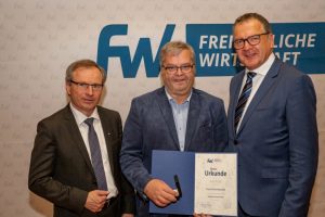 Die Ehrungen wurden vom Landesobmann der FW Landesrat Wolfgang Klinger und dem Bundesobmann WKÖ-Vizepräsident Matthias Krenn überreicht.