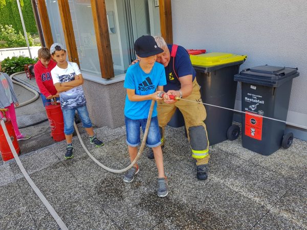 Die absoluten Höhepunkte des Lehrausfluges waren natürlich das Löschen mit dem Hochdruck-Schlauch oder Feuerlöschern und das Hantieren mit den hydraulischen Rettungsgeräten. Zum Abschluss des Projekts wurden allen Schülerinnen und Schülern die Brandschutz-Ausweise überreicht. In den Mittagsstunden ging der Ausflug mit einer Rückfahrt zur Volksschule in den Feuerwehrautos zu Ende.