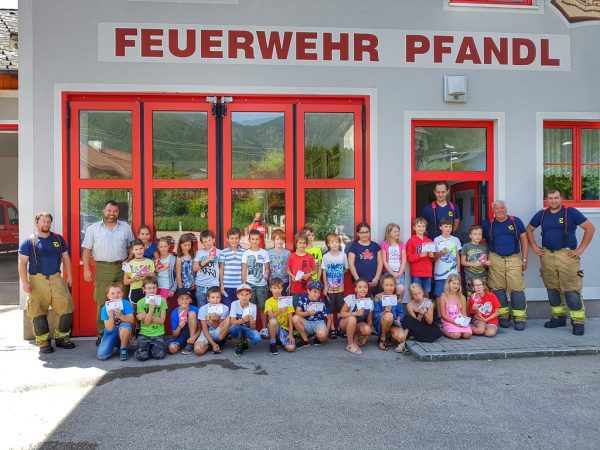 Nach einigen Unterrichtseinheiten über Brand- und Katastrophenschutz fand das Projekt „Gemeinsam Sicher Feuerwehr“ mit dem Besuch der Volksschule Pfandl bei der Freiwilligen Feuerwehr Pfandl seinen Abschluss.