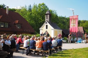 Am letzten Sonntag um 17 Uhr fand die feierliche Einweihungsfeier der Flößermadonna im Rahmen einer Maiandacht bei der neu außen renovierten Niklauskapelle statt. Der Obmann des Kulturerbevereins Traunfall Christian Neudorfer konnte neben Dechant Mag. Franz Starlinger, die Bürgermeisterin v. Desselbrunn Uli Hille, den Bürgermeister v. Roitham am Traunfall Alfred Gruber, von der ENERGIE AG die Herren Ing. Lemmerer u. Ing. Medl und den Schifferverein Stadl-Paura mit Tracht und Fahne unter Obmann Klaus Höfstötter begrüßen.