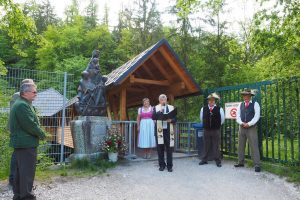 Herr Ing. Lemmerer von der Energie AG erzählte über die Recherchetätigkeit der 2012 gestohlenen Schutzmantelmadonna. Die neue Madonna konnte nach Originalmassen nach gefräst werden, weil die ursprüngliche Form der Madonna in Kroatien aufgetrieben werden konnte. Die BGM Uli Hille und Alfred Gruber dankten den Kulturerbeverein Traunfall für die Aktivitäten rund um den Traunfall. Konsulent Alfred Sohm vom Schifferverein brachte dann noch einige interessante geschichtliche Details über den historischen Platz: „Der Traunfall als gefährlichste Stelle für die 600 Jahre lange Salzschiffart auf der Traun“.