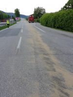 Die Feuerwehr Altmünster wurde um 19:25 Uhr alarmiert, um die Ölspur zu entfernen. Für die Reinigungsarbeiten musste die Landesstraße für den gesamten Verkehr immer wieder gesperrt bzw. örtlich umgeleitet werden. Mittels ausreichend Bindemittel, 15 Einsatzkräften und einer Kehrmaschine der Straßenmeisterei konnte für die wichtige Verkehrsverbindung nach etwa 2 Stunden wieder die Freigabe erteilt werden.
