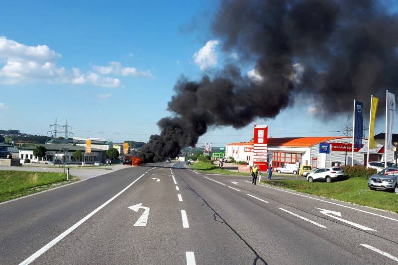 Kurz darauf stand der Wagen bereits in Vollbrand. Das Feuer habe sich laut Feuerwehr aus dem Bereich des hinteren linken Reifens ausgebreitet. Verletzt wurde durch den Brand niemand. Die B145 war gut eine halbe Stunde bis 19 Uhr total gesperrt. Um kurz nach 20 Uhr war sie wieder uneingeschränkt befahrbar.