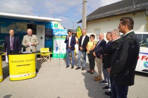 Am Montag, 15.7.2019 wurde am Bahnhofsvorplatz Vorchdorf die Inbetriebnahme des Projektes Traunsteintaxi gefeiert. Eingeladen und gekommen waren der 2. LT-Präs. Adalbert KRAMER, LAbg. Michael GRUBER, Stadtrat für Verkehr in Gmunden Wolfgang SAGEDER, SKGT Tourismus Michael SPECHTENHAUSER, Stefan SCHIMPL Stv. Geschäftsführer TVB, für die Busunternehmen des Traunsteintaxi Manfred FRÖCH und Dominik PREM, alle Bürgermeister, die auf der Strecke des Traunsteintaxi liegen, stellvertretend genannt Gunter SCHIMPL als BGM von Vorchdorf, der auch als quasi Gastgeber treffende Worte fand.