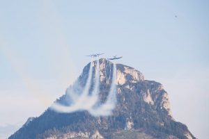 Einer der Höhepunkte des Abends: die Flugshow „Flying Opera“ mit Helikoptern, Kunstfliegern und Fallschirmspringern. Dabei zogen die Flying Bulls im Einklang mit der Live-Orchestermusik ihre Bahnen übers Salzkammergut. Internationale Künstler und Artisten zeigten auf der Bühne mitten im See ihre atemberaubenden Kunststücke. Zum Abschluss erleuchteten 1.000 Drohnen sowie ein fulminantes Feuerwerk die malerische Kulisse des Wolfgangsees. Bei der Dom Perignon-Party wurde dann zur Live-Musik von Rolf Stahlhofen, Mitglied der Söhne Mannheims gemeinsam mit Mousse T. und Emma Lanford die Nacht zum Tag gemacht.
