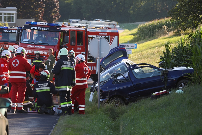 Einen Schwer- und einen Leichtverletzten hat Dienstagabend ein schwerer Crash zwischen zwei Autos an der Gemeindegrenze zwischen Gaspoltshofen (Bezirk Grieskirchen) und Wolfsegg am Hausruck (Bezirk Vöcklabruck) gefordert.
