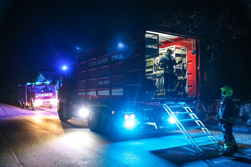 In Ottnang am Hausruck stand die Feuerwehr am späten Donnerstagabend bei einer Bergung eines Baggers im Einsatz.