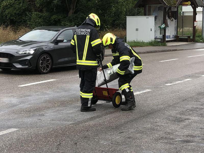Die Dieselspur zog sich, beginnend bei der Abfahrt von der B 145, durch Schalchham bis beinahe zur Agerbrücke. „Unsere Aufgabe war es, diese Spur so rasch wie möglich zu binden und zu entfernen, da bereits Meldungen über kleinere Unfälle und Beinahe-Unfälle vorlagen. Aufgrund der großen Distanz wurde zur Unterstützung auch die FF Rutzenmoos nachalarmiert“, berichtet die Feuerwehr.