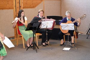 Ingrid und Barbara BURGSTALLER mit Monika WEISMANN sorgten für den musikalischen Rahmen dieser feierlichen Messe. Nach der Kräuterweihe versammelten sich die Kirchgänger am Vorplatz der Volksschule und kauften fleißig die geweihten Kräuterbüscherl, dazu gab es frische Bauernkrapfen und Kaffee, die die Frauen der Goldhauben, Kopftuch und Hutgruppe Gschwandt vorbereitet hatten.