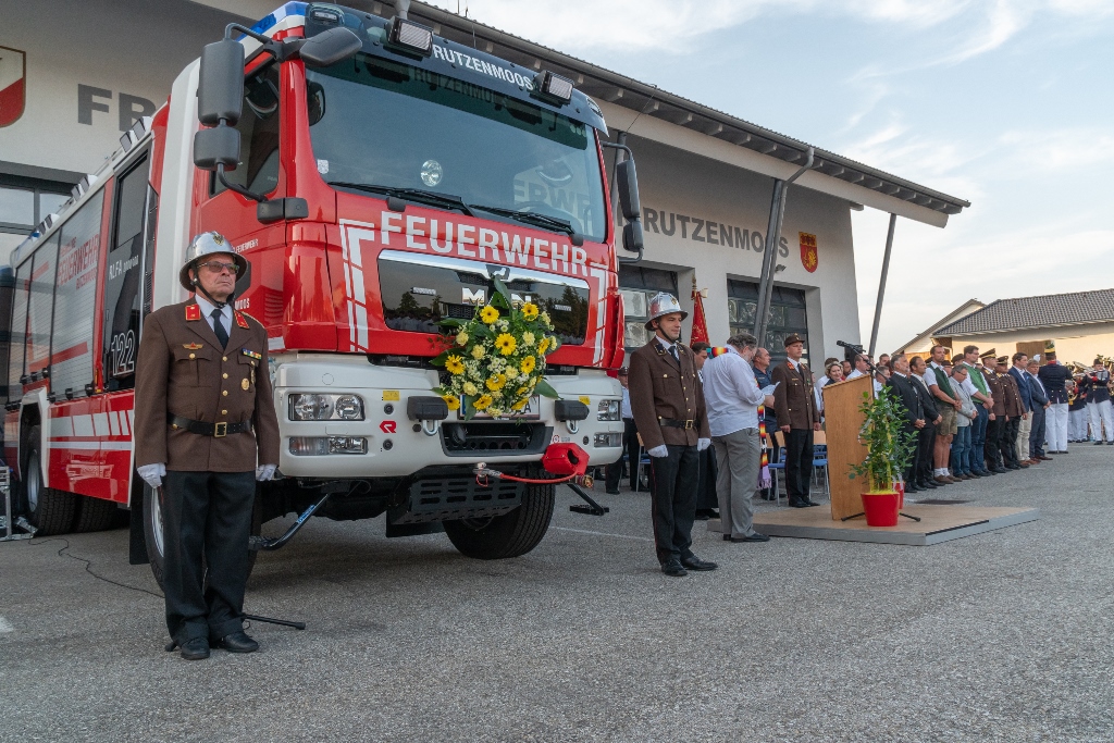 Ein großer Dank erging an die Regauer Firmen und an die Bevölkerung von Rutzenmoos und Umgebung, welche die FF Rutzenmoos mit ihren Geldspenden sehr großzügig unterstützten. Im Rahmen der Fahrzeugsegnung wurde dem Stabführer der Bürgerkorpskapelle Regau, Franz Lettner die Bezirksmedaille 1. Stufe überreicht.