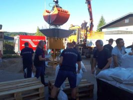 Auch Bürgermeister Peter Harringer war bei den Arbeiten dabei und bedankte sich für den geleisteten Einsatz bei den Einsatzkräften, indem er für die Verpflegung für die gesamte Mannschaft sorgte. Ebenso wurde seitens der Gemeinde der LKW mit Ladekran vom Bauhof zur Verfügung gestellt.
