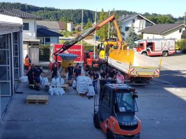 Um im Ernstfall rasch regieren und um auf vorbereiteten Schutz in Form von einsatzbereiten Sandsäcken bei Hochwasser- oder Starkregenereignissen zurückgreifen zu können, wurden am Mittwoch, 4.9.2019 über 500 Sandsäcke von Feuerwehrmännern der Marktgemeinde Regau (FF Regau und FF Rutzenmoos) gefüllt. Zum ersten Einsatz kam dabei auch die neue Sandsackfüllmaschine, welche von der Marktgemeinde Regau angeschafft wurde. Diese Füllmaschine war ein Teil von mehreren Anschaffungen von Hilfsmaterialen für die Einsatzkräfte im Katastrophenfall. Dieses Maßnahmenpaket wurde von den Feuerwehren gemeinsam mit der Marktgemeinde Regau ausgearbeitet und soll in naher Zukunft endgültig abgeschlossen werden.