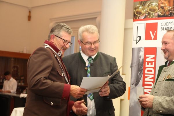 Am Sonntag, 20.10.2019 wurden auch heuer wieder die Ehrungen an verdiente Mitglieder der jeweiligen Musikkapellen vom Landes-Stabführer des OÖBV Kons. Franz Winter und Bezirksobmann Markus Resch überreicht. Zahlreiche Musikerinnen und Musiker kamen mit ihren Obfrauen und Obmännern, KapellmeisterInnen und Musikkollegen zu einem gemütlichen Nachmittag in die Trinkhalle. Musikalisch umrahmt wurde die Veranstaltung von der unter der Bürgermusikkapelle Bad Ischl.