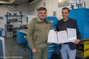 Am Montag, den 30.09.2019 fand in der Berufsschule Attnang die Projektpräsentation der 4 neu angefertigten Spritzwände für das Bezirksfeuerwehrkommando Vöcklabruck für den Jugendbewerb statt. Der Direktor der Berufsschule Attnang, Herr Dir. OSR Ing. Mag. Rudolf Baldinger, BEd begrüßte den Bezirksfeuerwehrkommandanten Wolfgang Hufnagl und den Abschnittsjugendbetreuer Walter Gastelsberger. Die 13 Lehrlinge, welche in den letzten 4 Wochen diese Projektarbeit umgesetzt hatten, präsentierten die einzelnen Projektschritte von der Planung, Auswahl des Materials, Fertigung, bis hin zur Kostenkalkulation. 149 Arbeitsstunden wurden von den Lehrlingen für diese 4 Spritzwände aufgewendet. Bezirksfeuerwehrkommandant Wolfgang Hufnagl bedankte sich sehr herzlich bei der Berufsschule Attnang, dass Sie dieses Projekt aufgenommen und umgesetzt haben. Zum Schluss überreichte er dem Direktor der Berufsschule eine Dankesurkunde für diese Projektarbeit.