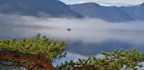 Die Nebelschwaden erheben sich gen Himmel und geben so manches Geheimnis frei – bunte Bäume, Bergzüge, den Dachstein oder auch ein Schiff, das sich den Weg durch den Nebel bahnt.